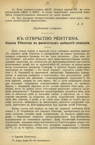 / К открытию Рёнтгена. Опыты Рёнтгена в физическом кабинете гимназии