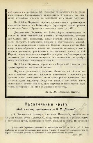 Касательный круг. (Ответ на тему, предложенную в № 23 "Вестника")