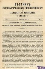 Шиллер Н. Абсолютная шкала температур, в связи с двумя основными законами механической теории тепла (Стр. 3—10. Продолжение в выпусках № 50, cтр. 27—33; № 52, cтр. 73—79)●