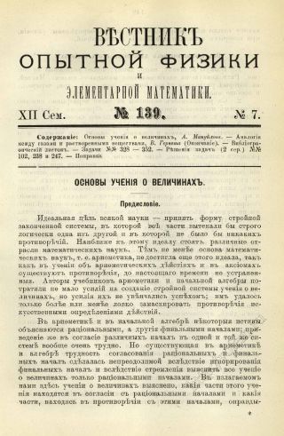 Мануйлов А. Основы учения о величинах (Стр. 141—149. Продолжение в выпусках № 140, cтр. 165—173; № 141, cтр. 185—193; № 142, cтр. 209—217)●