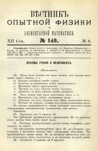 Мануйлов А. Основы учения о величинах (Стр. 165—173. Начало в выпуске № 139, cтр. 141—149. Продолжение в выпусках № 141, cтр. 185—193; № 142, cтр. 209—217)
