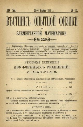 Бравэ А. Исследование о многогранниках симметрической формы (Стр. 226—230, перевод Самойлов Як.. Начало в выпусках № 225, cтр. 207—212; № 222, cтр. 137—140; № 221, cтр. 106—112; № 218, cтр. 34—43; № 215, cтр. 249—254; № 214, cтр. 220—228)